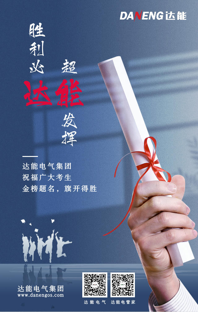 十年寒窗,不負(fù)韶華,靜待一照,未來(lái)可期!6月7日-9日,一年一度的高考來(lái)臨,今年全國(guó)考生達(dá)到1000余萬(wàn)人。達(dá)能電氣集團(tuán)祝廣大考生勝利必達(dá)!超發(fā)揮!金榜題名!旗開(kāi)得勝!