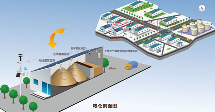 夏季三伏天,糧食倉(cāng)儲(chǔ)面臨著高溫高濕環(huán)境的影響,糧倉(cāng)空間內(nèi)的溫濕度監(jiān)測(cè)尤為重要。 對(duì)糧庫(kù)糧食安全儲(chǔ)藏的主要參數(shù)是糧庫(kù)的溫度和濕度。糧食在正常儲(chǔ)藏過程中,含水量一般在12%以下是安全狀態(tài),不會(huì)產(chǎn)生溫度突變,一旦糧庫(kù)進(jìn)水、結(jié)露等使糧食的含水量達(dá)到20%以上時(shí),由于糧粒受潮,胚芽萌發(fā),新陳代謝加快而產(chǎn)生呼吸感,使局部糧食溫度突然升高,必然引起糧食“發(fā)燒”和霉變,并可能形成連鎖反應(yīng),從而造成不可挽回的損失。