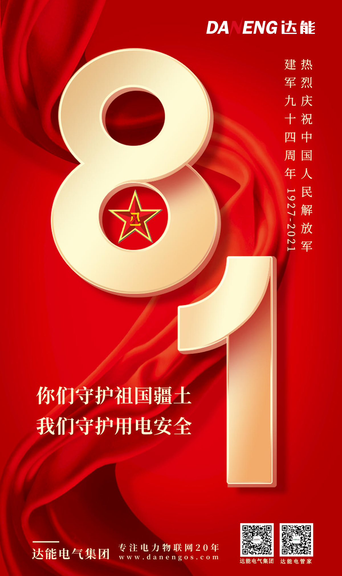 達(dá)能電氣集團(tuán)熱烈慶祝中國人民解放軍建軍94周年,向軍人致以最高敬意!