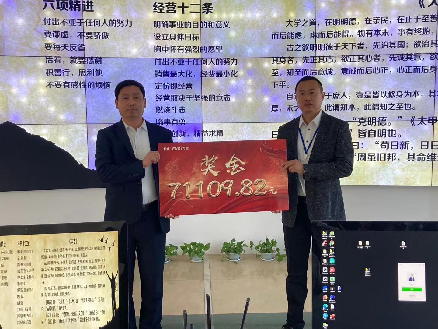 10月11日,達能電氣集團召開月度會議。會議首先進行表彰儀式,對電力中心負責人季剛給予現(xiàn)金獎勵7萬余元,以獎勵季剛的銷售佳績。激勵工程中心現(xiàn)金5萬余元,表彰圓滿完成重要工程項目。達能電氣董事長高藝為獲獎員工頒獎,高總號召全員學習先進、學習典型,激勵大家用奮斗創(chuàng)造價值。