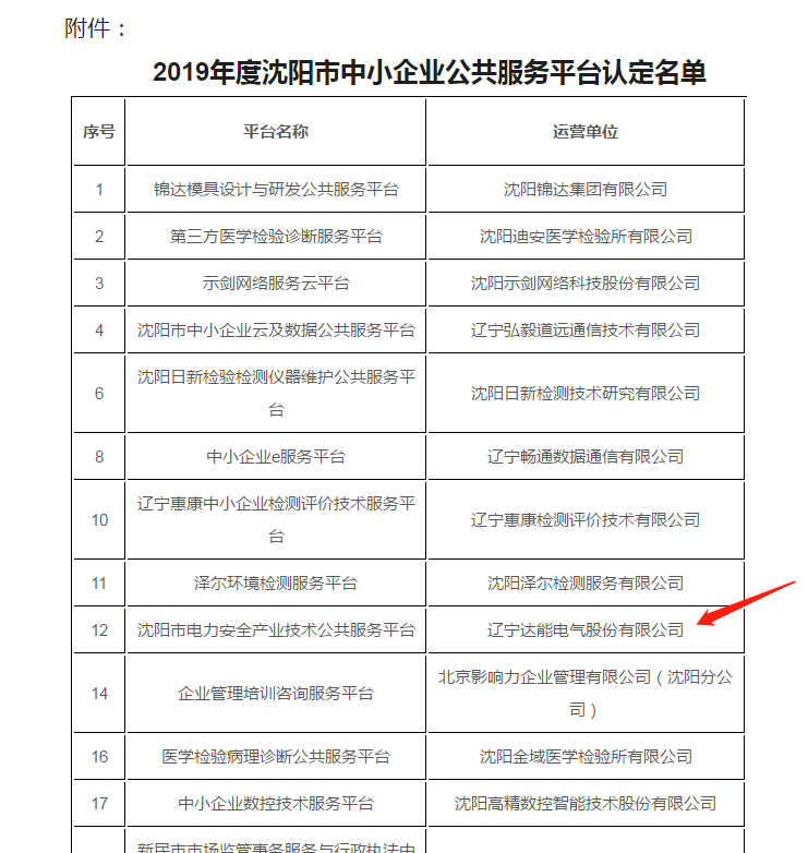 達(dá)能電氣沈陽(yáng)市電力安全產(chǎn)業(yè)技術(shù)公共服務(wù)平臺(tái)被沈陽(yáng)市工信局認(rèn)定為“沈陽(yáng)市中小企業(yè)公共服務(wù)示范平臺(tái)”