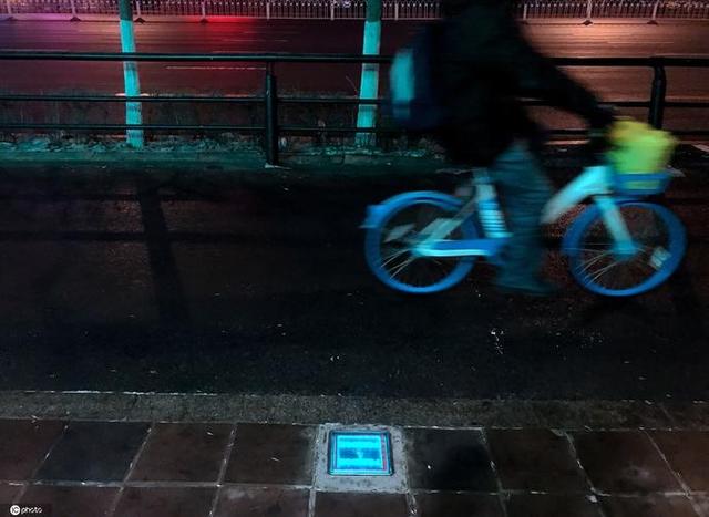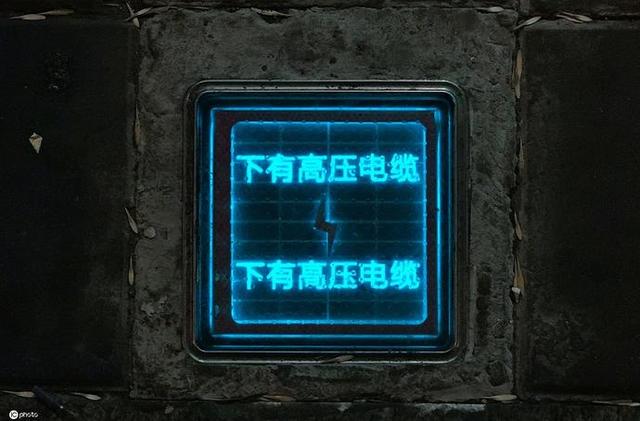 2021年1月20日,遼寧省沈陽市,和平區(qū)首條高壓電纜地面標(biāo)識亮相街頭,夜晚被喚醒點亮,藍(lán)屏醒目來往經(jīng)過的市民低頭一看,下有高壓電纜提示。